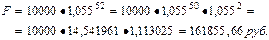 FM1=1,0555=1,30696, откуда F=10000 1,306956 = 13069,6 руб.