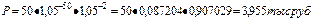 Срок ссуды n=52 года. В этом случае находим два табличных значения множителя FM1: 1,05550 и 1,0552.
