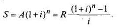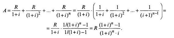 ). Первая выплата производится через год, величина ее равна R, с приведением к настоящему моменту - R/(1 +i). Современная величина следующей выплаты - R/(1+ i)2 и т.д. За п лет современная величина ренты