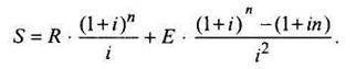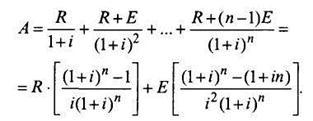 Переменная рента с постоянным приростом платежей. Для этого типа ренты имеем изменяющуюся величину рентных платежей за п лет: