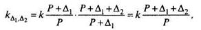 (Р - сумма цен акций всех компаний, входящих в список Доу - Джонса; к - корректирующий делитель). Предположим, что произошло некоторое событие (изменение номинала акций, изменение списка Доу - Джонса и т. п.), в результате которого арифметическое значение суммы акций изменилось на величину ∆ и стало равным Р + ∆. Величина ∆ может быть как положительной, так и отрицательной. Поскольку речь идет о той же самой биржевой конъюнктуре, новый индекс Доу - Джонса должен быть равен старому. Это значит: