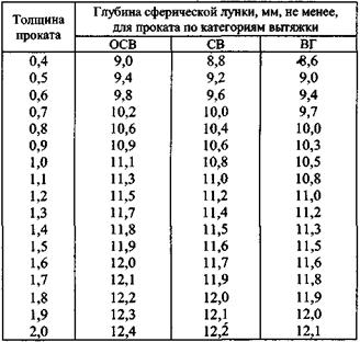 Глубина лунки при испытании на выдавливание стального проката по ГОСТ 9045-93