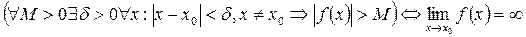 Если f (x) стремится к бесконечности при x→x 0 и принимает лишь положительные значения, то пишут