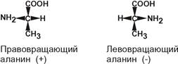 Деление на L- и D-формы не соответствует делению на право- и левовращающие. Для одних аминокислот L‑формы (или D‑формы) являются правовращающими, для других – левовращающими. Например, L‑аланин – правовращающий, а L‑фенилаланин – левовращающий. При смешивании L- и D-форм одной аминокислоты образуется рацемическая смесь, не обладающая оптической активностью.