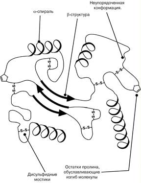 Наряду с a-спиралью и b-структурой в третичной структуре обнаруживается так называемая неупорядоченная конформация, которая может занимать значительную часть молекулы. В разных белках наблюдается разное соотношение типов структур.