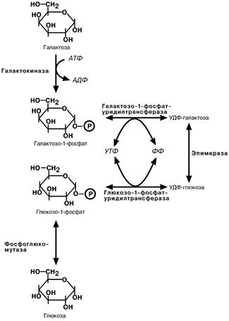 Нарушения обмена галактозы вызваны генетическим дефектом нескольких ферментов: