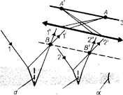 . Часть фронта падающей волны, перпендикулярного к плоскости чертежа, изображена в виде отрезка АВ (
