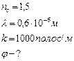 . Число интерференционных полос, приходящихся на 1 см, равно 10. Определить преломляющий угол клина.