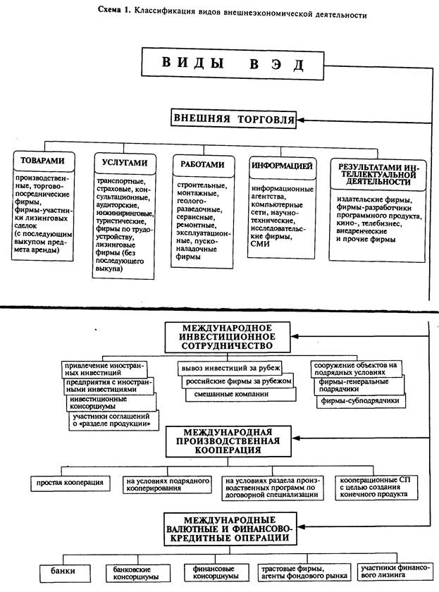 Все фирмы, принимающие участие во внешнеэкономической деятельности классифицируется по критерию принадлежности к тем или иным видам ВЭД (схема 1).