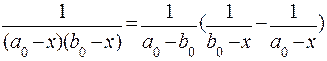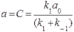 и с учетом того, что при t = 0, исходные концентрации равны a0 и b0, в любой момент времени на основании эквимолярного взаимодействия a и b: