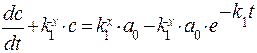 Первая формула представляет собой уравнение скорости реакции первого порядка, решение которого имеет вид