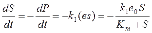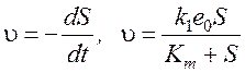 k1e0 -это произведение отражает максимальную скорость реакции, когда S находится в большом избытке, и тогда реакция подчиняется уравнению 1-го порядка: