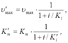 Если снижение скорости ферментативного катализа при действии ингибитора определяется соотношением: