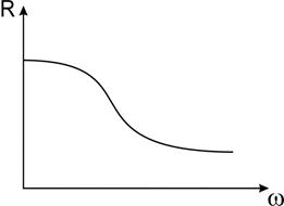 | Рис.14. Зависимость электропроводности от частоты переменного тока. По оси абсцисс круговая частота переменного тока; По оси ординат – сопротивление биологического объекта |