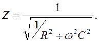 где: w – круговая частота переменного тока в Гц, w=2pn (n- частота переменного тока), С – емкость