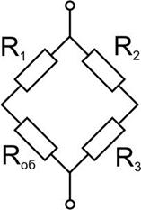 | Рис.15. Мостовая схема измерения сопротивления объекта (Rоб) |