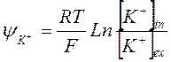 где [К+]i и [К+]e – концентрации внутриклеточных – i и внеклеточных ионов – e, соответственно.