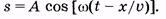 Уравнение волны выражает зависимость смещения колеблющейся точки (s), участвующей в волновом процессе, от координаты ее равновесного положения и времени. Для волны, распространяющейся вдоль направления ОХ, эта зависимость записывается в общем виде: