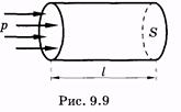 Рассчитаем работу, совершаемую при однократном сокращении левого желудочка. Изобразим Vу — ударный объем крови — в виде цилиндра (рис. 9.9). Можно считать, что сердце продавливает этот объем по аорте сечением S на расстояние l при среднем давлении р. Совершаемая при этом работа