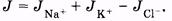 При получении выражения для потенциала покоя важно учитывать знаки ионов, проникающих через мембрану. Это можно сделать, в частности, обозначая знаком плюс плотности потоков положительных ионов и знаком минус — отрицательных. Основной вклад в создание и поддержание потенциала покоя вносят ионы натрия, калия и хлора. Суммарная плотность потока этих ионов с учетом их знаков равна