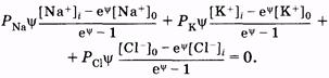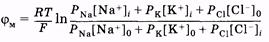 PNa[Na+] i + РК[К+] i + РСl[Сl-]0 = ey {PNa[Na+]0 + РК[К+]0 + РС1[Сl-] i },