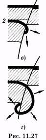 Ревербератор. Свойства ревербератора. На протяженном участке миокарда может располагаться несколько участков с повышенной рефрактерностью, при этом границы участков могут быть не прямолинейными. При распространении волн возбуждения в этом случае возникают спиральные автоволны — ревербераторы. Рассмотрим механизм образования ревербератора на криволинейной границе АВ раздела двух областей с разной рефрактерностью (рис. 11.27).
