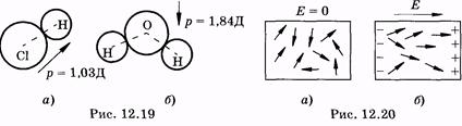 В отсутствие электрического поля дипольные моменты молекул ориентированы хаотически (рис. 12.20, а) и векторная сумма моментов всех N молекул равна нулю: