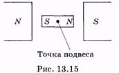 Если стержень из парамагнетика подвесить в вакууме в однородном магнитном поле, то в положении равновесия он установится вдоль линий магнитной индукции (рис. 13.15, вид сверху), что соответствует ориентации
