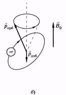. Поэтому на него, как на контур с током, со стороны магнитного поля действует момент силы. Таким образом, создаются условия для возникновения прецессии электронной орбиты (рис. 13.16, б).
