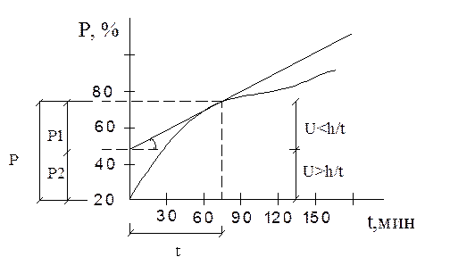 Эта кривая позволяет определить какой процент взвеси осаждается в течение любого заданного промежутка времени.