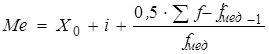 - сумма накопленных частот или частностей интервала, предшествующего медианному;