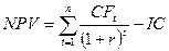 где CFt — годовые денежные поступления в периоде t; IС — стартовые инвестиции; r — ставка процента; п — число периодов реализации проекта.