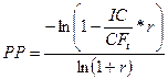 3. Формула расчета срока окупаемости с учетом временного фактора (РР — payback period).
