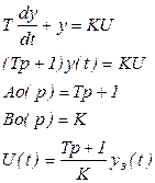 Описание объекта с помощью дифференциального уравнения, записанного в операторной форме, имеет вид: