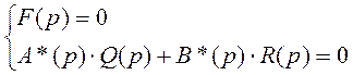 F(p)*[A*(p)*Q(p)+B*(p)*R(p)]=0,