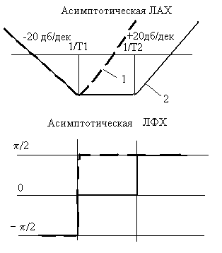 Как видно, на больших частотах фазовая характеристика увеличивается на +π/2, тем самым увеличивается устойчивость замкнутой системы.