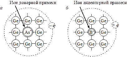 донорной (а) и акцепторной (б) примеси