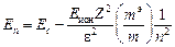 Поскольку электрон движется не только в кулоновском поле иона As+, но и в периодическом поле кристаллической решетки полупроводника, он обладает эффективной массой m э. Взаимодействие электрона с ионом мышьяка, имеющим заряд Z × e (Z – кратность заряженного иона), происходит в твердом теле с диэлектрической проницаемостью e. В этом случае решение уравнения Шрёдингера для пятого электрона мышьяка дает собственные значения энергии этого электрона (в эВ):