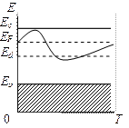 | Рис. 5. Основные и возбужденные примесные состояния в запрещенной зоне | Рис. 6.Зависимость уровня Ферми от температуры в донорном полупроводнике |