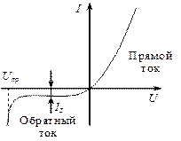 Зависимость тока, протекающего через p-n-переход, от приложенного напряжения (вольтамперная характеристика) обладает резко выраженной нелинейностью (рис. 11). При изменении знака U значение тока через p-n-переход изменяется в 105–106 раз. Благодаря этому электронно-дырочный переход является вентильным элементом, используемым в полупроводниковых диодах для выпрямления переменного тока.