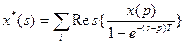 Ось интегрирования разделяет особенности изображений функций, участвующих в произведении. Интегрирование с помощью вычетов в полюсах x(s) слева от оси интегрирования дает рабочую формулу для вычисления дискретного преобразования Лапласа
