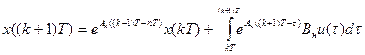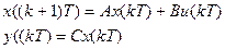 Поскольку внутри интервала квантования значение управления с выхода экстраполятора нулевого порядка остается постоянным, уравнения состояния непрерывного объекта с дискретным временем можно сразу записать в привычном для дискретных систем виде