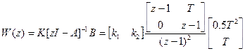 Передаточная функция является скалярной. Поэтому характеристическое уравнение D(z) замкнутой системы найдем как сумму числителя и знаменателя передаточной функции