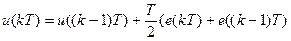 , реализуется в виде численного алгоритма микропроцессора. Наибольшее распространение на практике получил подход, основанный на численном интегрировании методом трапеций, известный в западной литературе как преобразование Тастина. Разностная схема интегрирования ошибки e(t) методом трапеций представляется разностной схемой
