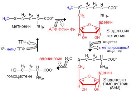 Пропионил-СоА, который образовался из изолейцина и метионина как и из других источников превращается в сукцинил-КоА. Это превращение включает биотинзависимое карбоксилирование с образованием метилмалонил-КоА. Это соединение образуется также непосредственно из валина (без предварительного образования пропионил-КоА). В результате изомеризации, коферментом которой является производное витамина В12, метилмалонил-КоА превращается в сукцинил-КоА—промежуточный метаболит цикла лимонной кислоты.