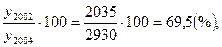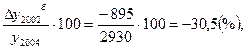 Δyб2002 = y2002 - y2004 = 2035 - 2930 = - 895, Δyб2003 = y2003 - y2004 = 2232 - 2930 = - 698,