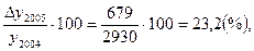 Δyб2005 = y2005 - y2004 = 3609 - 2930 = 679, Δyб2006 = y2006 - y2004 = 4229 - 2930 = 1299.