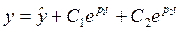 где C1 и C2 – постоянные интегрирования, p1 и p2 – корни характеристического уравнения