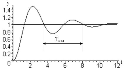 График переходного процесса для этого случая показан на рис. 3.7. Звено называется колебательным, и период колебаний выражается через частоту свободных колебаний так: