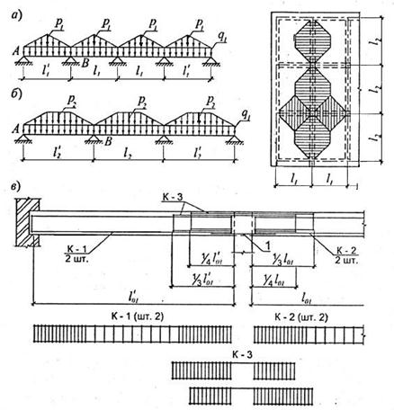 Многопролетные неразрезные ПОК с рабочей арматурой диаметром до 7 мм можно армировать типовыми рулонными сетками. Для этого плиту разбивают в каждом направлении на три полосы: две крайние шириной